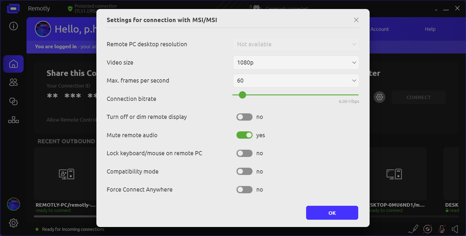 - P2P with Error Resilience is no longer used and will be removed from future versions (all P2P connections in the latest Remotly version have advanced error resilience enabled)